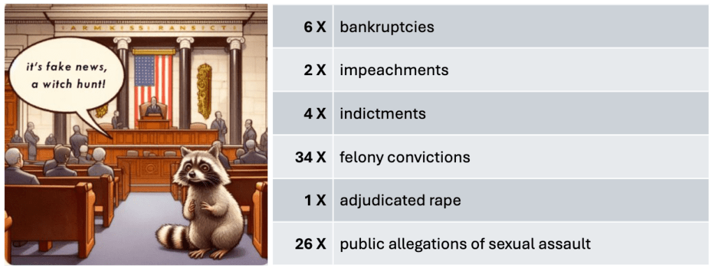 To say nothing of election fraud claims, inciting an insurrection or “grabbing ’em by the pussy.”